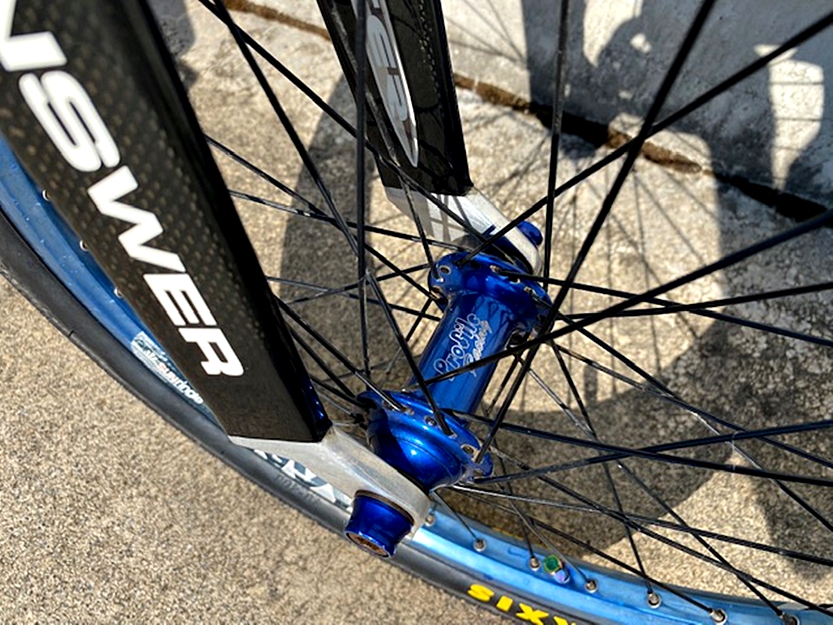 I’m always on the look-out for interesting race bikes and when I spotted this iconic frame on a Japanese auction site, I jumped on it. That was back in September 2020 and since then I’ve slowly been replacing and swapping out parts, so that it’s now more to my liking. The first all-carbon race frame, the UB2 was designed with the 2008 Beijing Olympics in mind (BMX racing’s Olympic debut) and this one is a 2010 model, the third and final year of UB2 production. It’s been raced and it shows – this is no carpet queen, with plenty of battle scars to the frame and parts. I continue to race this bike here in Japan and it gets comments wherever I go. I love how it looks and rides, and have no plans to retire it any time soon!
