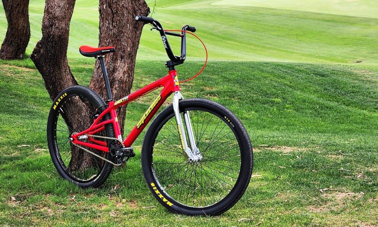 A Supercross AMX250 35 Year Anniversary BMX race bike is today’s Bike Of The Day!! – The AMX250 features the classic Supercross 6 Bar rear end design but in a bigger, 26in form. I like the red, yellow and black color scheme on this bike. Shout out to Michael Hooks for submitting this one!