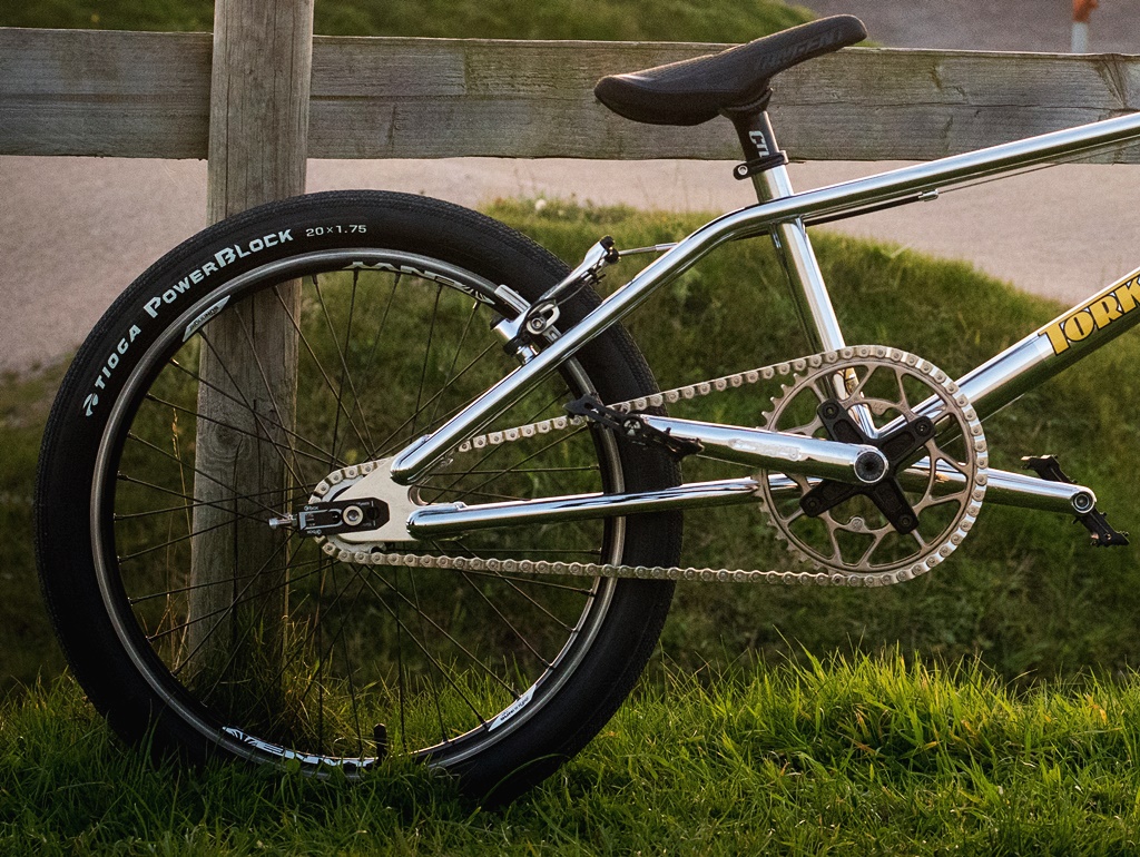 This bike was going to have old school vibes with the twin top tubes and Torker heritage but it needed to have the capability of an up to date race bike. I wanted a clean racey look with the plenty of chrome and polished parts but some black parts to offset the shine. I think this was the bike I dreamed of racing as a 13 year old! ~Matthew Foulkes