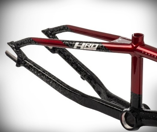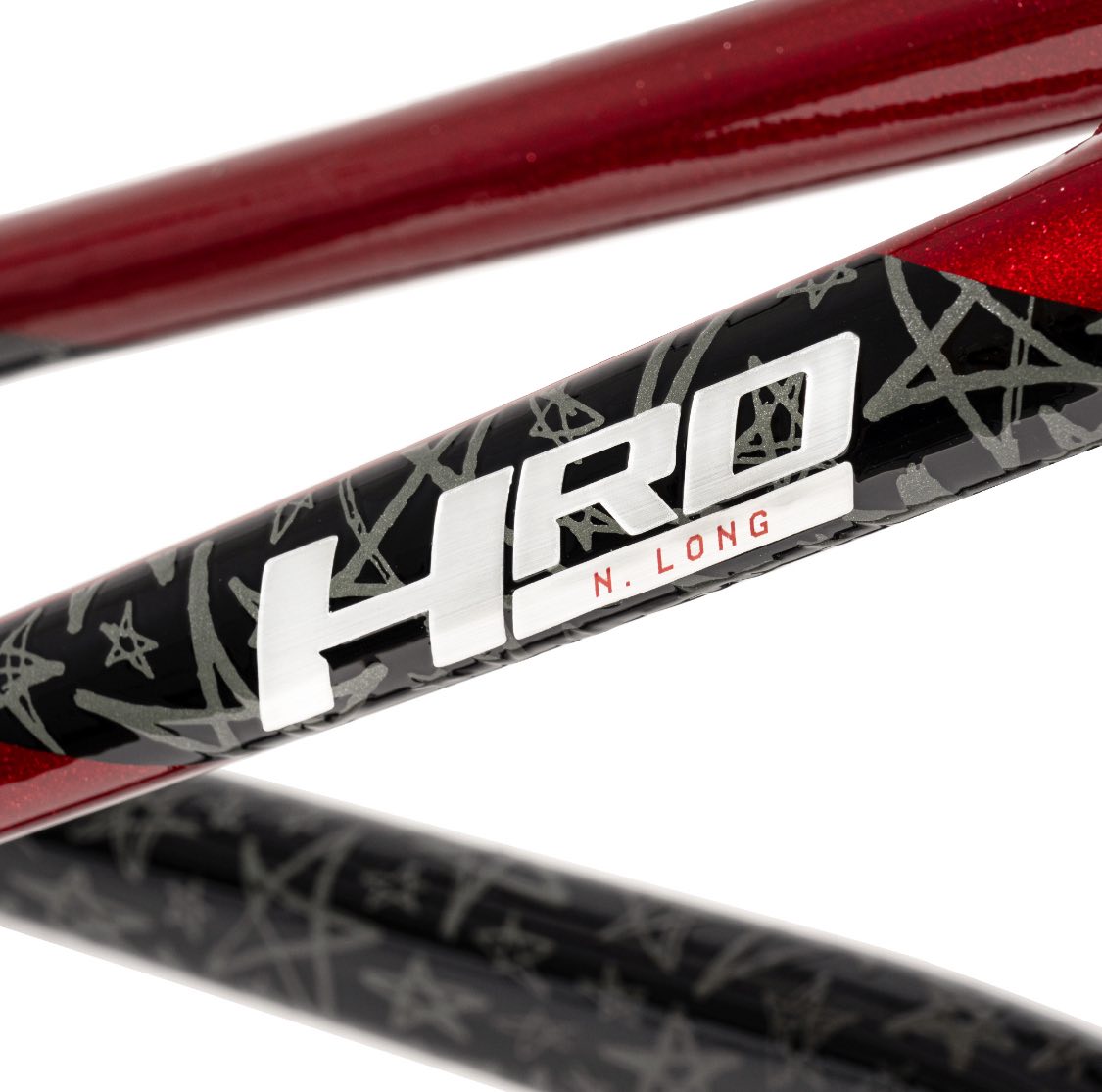 Huffy Bicycles team manager, vet pro and Olympian Nic Long posted some photos of his final prototype BMX race frame and it looks sick! The HRD N.Long frame has a nice burgundy and black color scheme with with decals. When you look a little closer to the black on the rear end, you’ll see little grey stars. A beefy, solid seat stay bridge has the Huffy “H” on it. This is also a disc only frame so there’s no v-brake mounts.