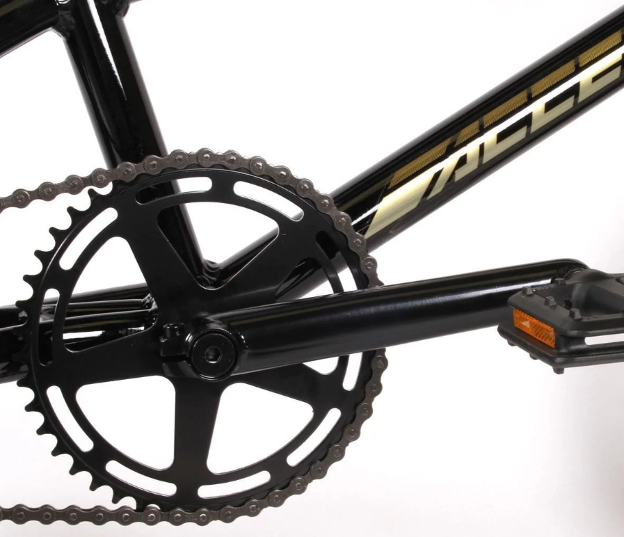 The Accelerator is built around a lightweight and durable 6061 heat treated Aluminum frame with Race specific geometry, reliable integrated headtube and a striking decal package. The parts package easily out-performs the price tag and boasts sealed bearings throughout, Tough Cr-mo handlebars, and Tubular 3-piece cranks to transfer maximum power while maintain an excellent strength to weight ratio. The whole package sits comfortably on a set of fully sealed, full size 1.75” wheels with double wall 36 spoke rims and Race specific 1.75” tires.