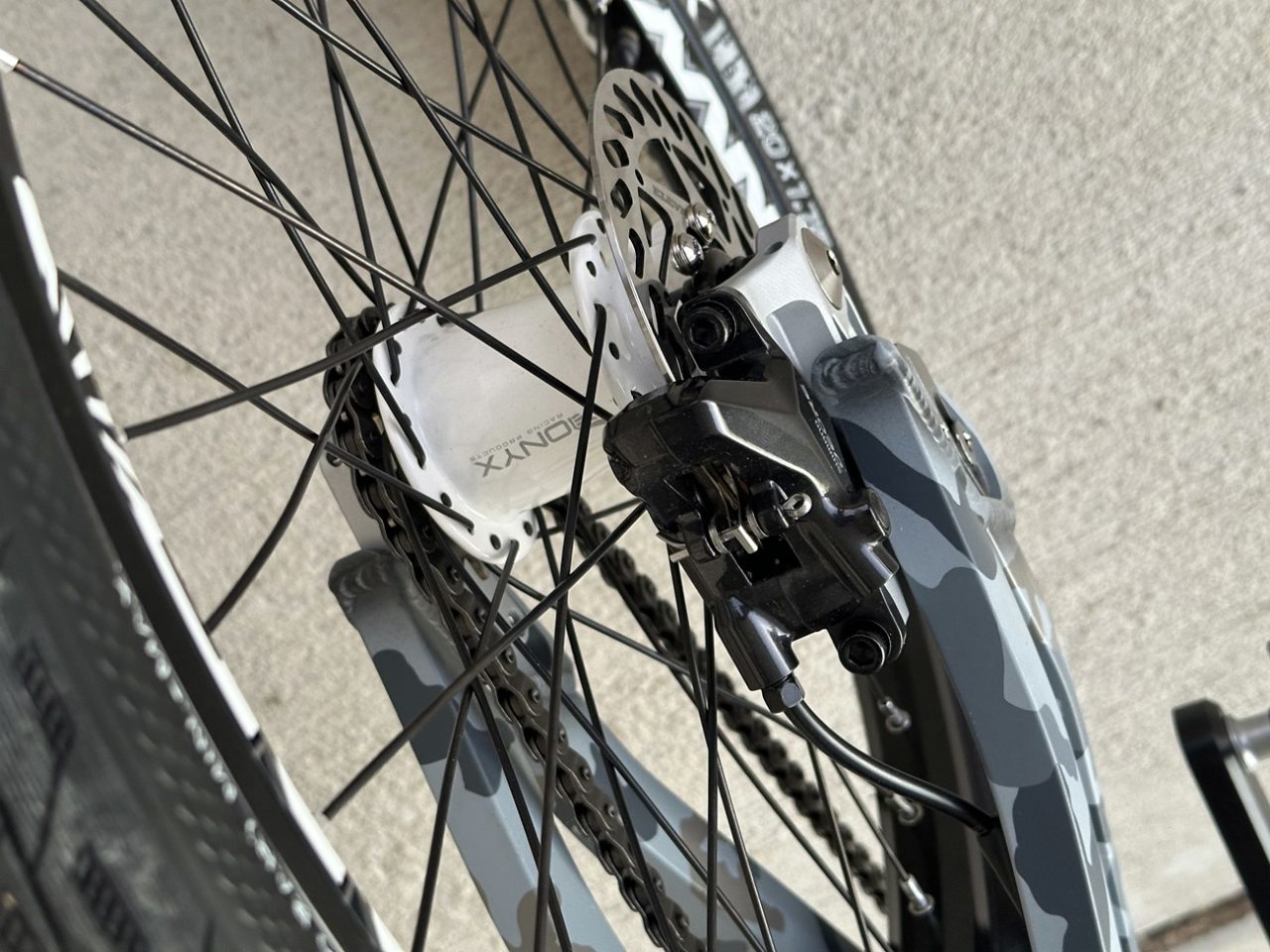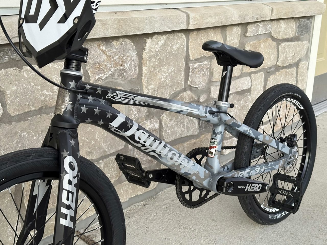 We got another heavy hitter in December with this custom painted Daylight Arc C3!! This build was submitted by Steve Spencer and it came out amazing. I love the two-tone grey and black color scheme with the stars and camo elements in the paint job. And those Hero forks look so sick on this bike! Be sure to give this bike a rating for the Bike Of The Month and Bike Of The Year charts.