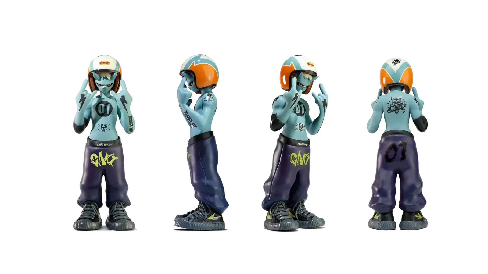We decided to go beyond just making figures; we wanted to create “gear for the figures” that you can wear too. We materialized the iconic helmets of two legendary GAKI RACE drivers. Now, collectors can do more than just display the characters—you can wear that rebellious soul on your head and take it to the streets. ~JT