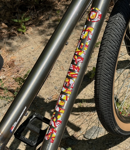 - Extras: S&M handlebar pad shortened 2″ by local tailor; 2003ish S&M Next Gen Dirtbike frame stickers; Dancing man S&M sticker om bars; pitchfork shield stickers on forks