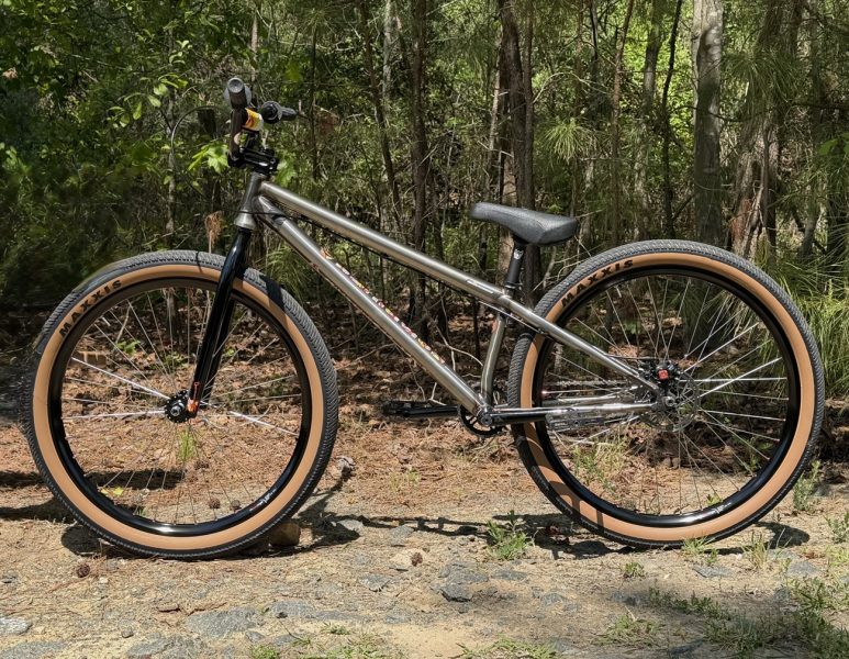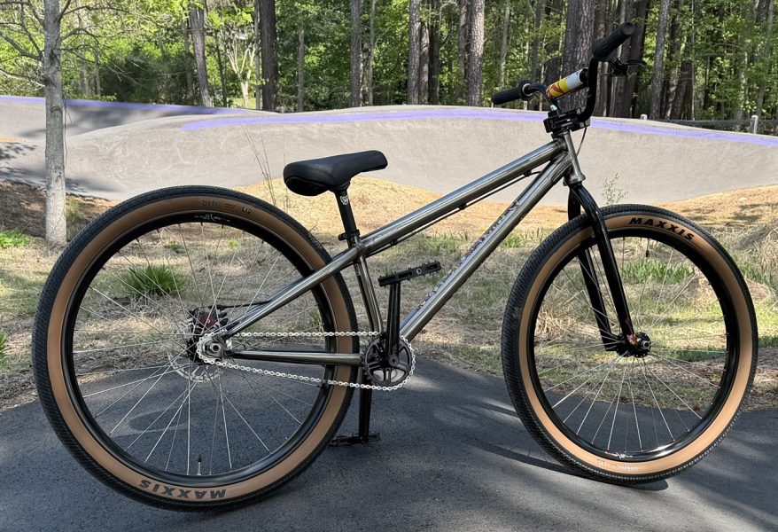 The goal was to build a fairly light, quick-handling pump track/trail/race/whatever bike that handles like a 20″ race bike, yet has 26′” wheels. This bike achieves that goal in every way. ~John