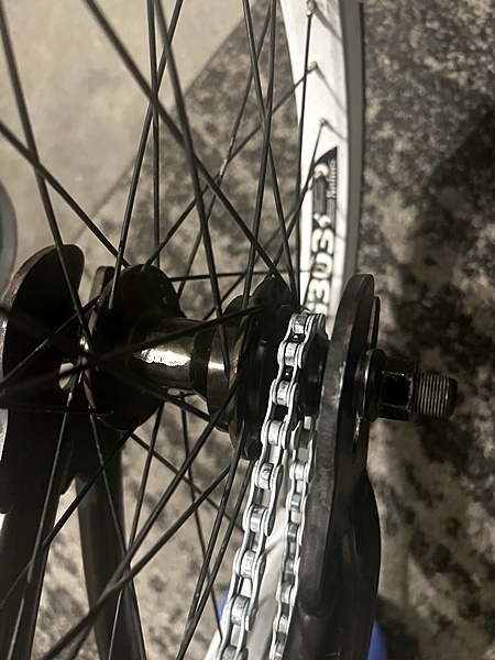 • Rims- GT Fueler factory G303 X rims- white 10MM front Adapted for 14MM fork dropout with nuts from Porkchop BMX /14MM 9t rear