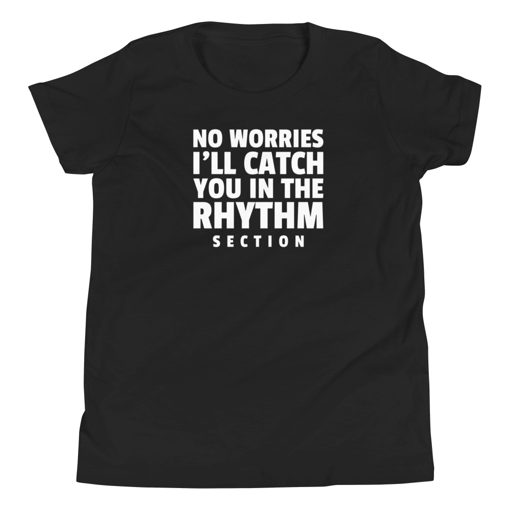 The “No Worries I’ll Catch You In The Rhythm Section” tee is part of our smack talking line of shirts. We’ll be dropping more soon!