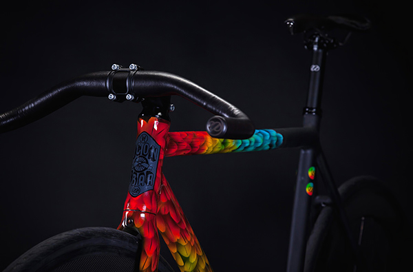 This amazing looking fixed gear road bike called The Federleicht has an awesome paint job and illustration on it so you know I had to share it with ya’ll! Below is a quick excerpt about the build. See more after the jump….